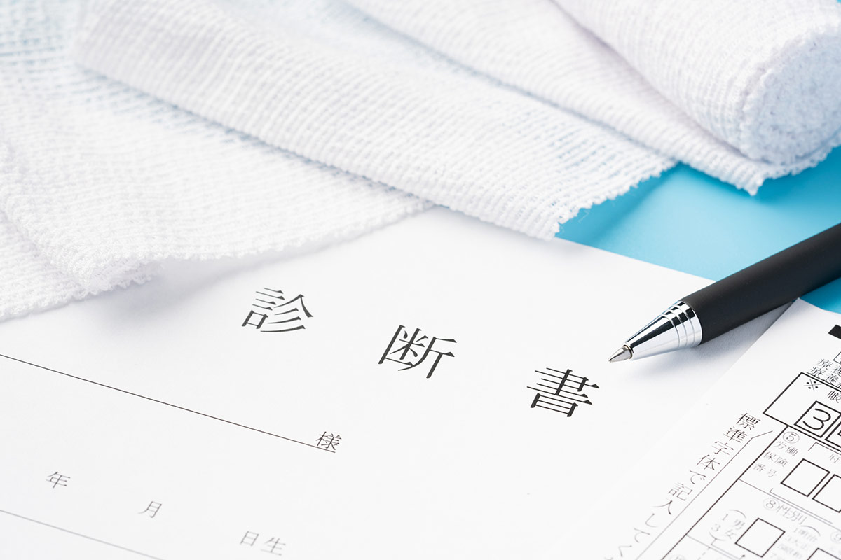 整形外科である当院は医療機関として、後遺障害の等級認定に必要な「後遺障害診断書」の作成・発行に対応しております。この診断書は、後遺症に基づく慰謝料や損害賠償の請求時に不可欠な書類です。なお、診断書の発行は患者様ご本人からの申請に限らせていただいており、代理の方からのご依頼はお受けしておりませんのでご了承ください。