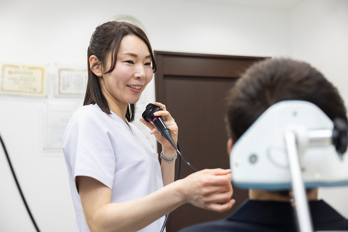 車いすで来院されるご高齢の方も、バリアフリーで診察室内に入って頂けます。聞こえが悪い、耳あかが取れない、鼻水が出る、声がかれる、飲食でむせるなど、本人や家族が気付かれたときに、まずは受診をお勧め致します。