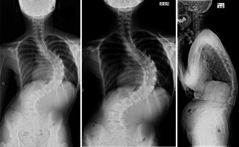 思春期の女子の発症が多い傾向がありますが、乳幼児期、学童期の発症もあり、それぞれ異なった特徴を持っています。成長とともに進行し、成長期の終了とともに変形の進行も止まる場合が多いのですが、弯曲が大きい場合には成人になっても進行が続く可能性があります。